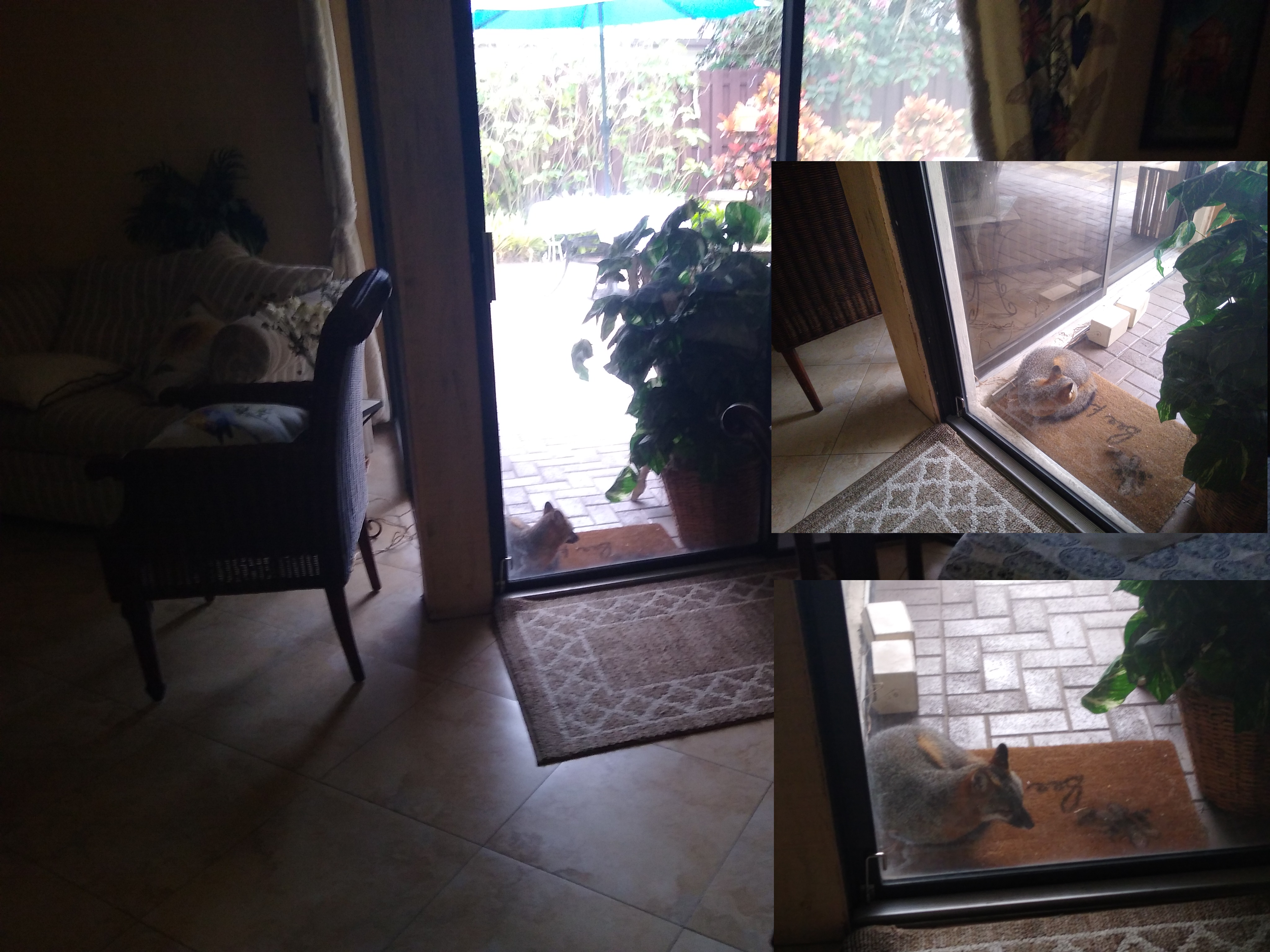 The fox returned for another visit recently. He looked tired and had a limp. He curled up on the porch next to the sliding door like a dog or a cat would. We just left him alone and let him sleep all day. He just lied there curled up for a good part of the day then from one minute to the next he was gone.Back Yard Sanctuary